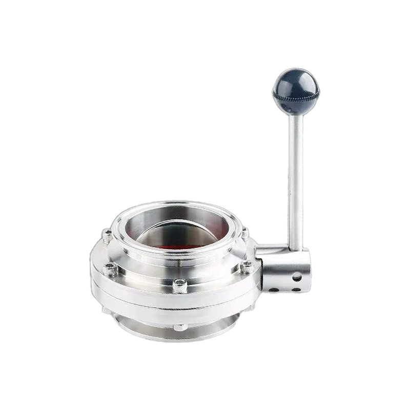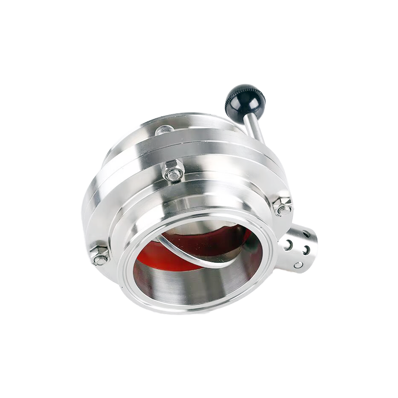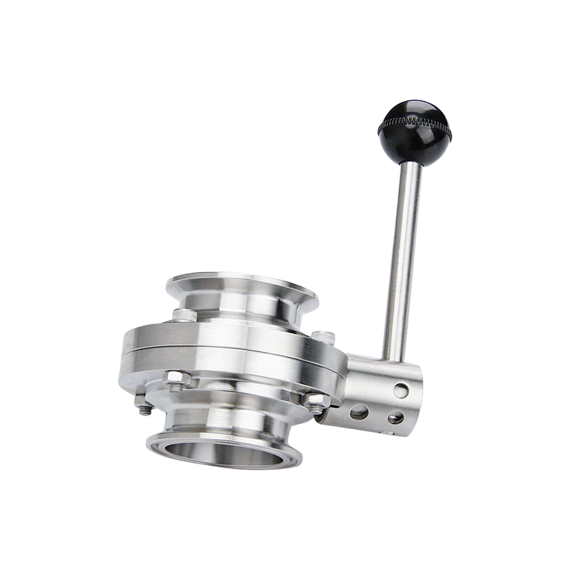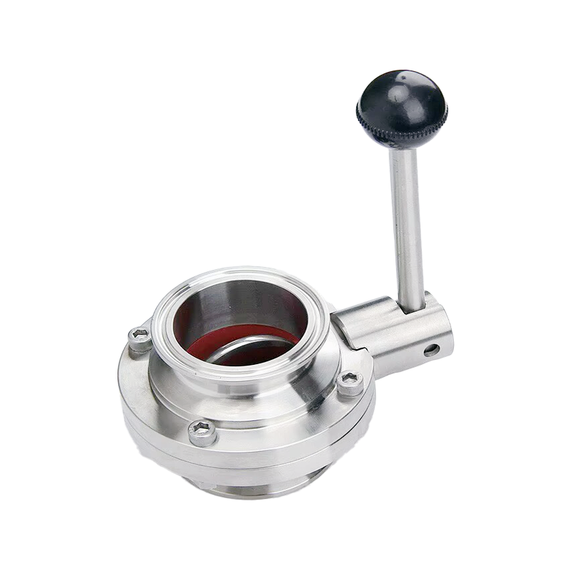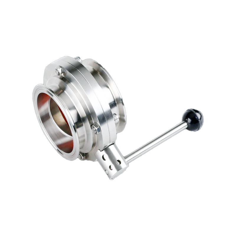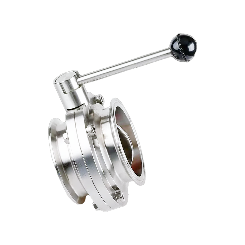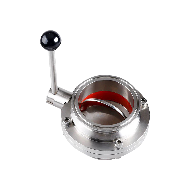 快装蝶阀作为一种旋转式启闭阀门,核心工作逻辑围绕阀杆驱动蝶板的旋转运动实现管路介质的通断与流量调节。其阀体内设有一块圆形蝶板作为核心启闭件,蝶板圆心与贯穿阀体的阀杆固定连接,阀杆另一端则配套手柄、气动或电动驱动装置。工作时,通过驱动装置操控阀杆带动蝶板进行0°~90°的旋转:当蝶板旋转至与管道介质流向平行时(阀杆旋转90°),阀门处于全开状态,此时介质可通过管道,流通截面积大,流体阻力最小;当蝶板旋转至与介质流向垂直时(阀杆旋转0°复位),蝶板边缘会紧密贴合阀体密封面,切断介质流通通道,实现可靠密封断流;若将蝶板旋转至0°~90°之间的任意角度,可通过改变蝶板遮挡管道的截面积,精准调节管道内介质的流量与流速。同时,其采用的卫生级卡箍快装连接结构,虽不直接参与启闭核心动作,但可快速完成与管道的装配拆卸,保障整体管路系统的洁净性与维护便捷性,适配各类卫生级流体输送场景的运作需求。
